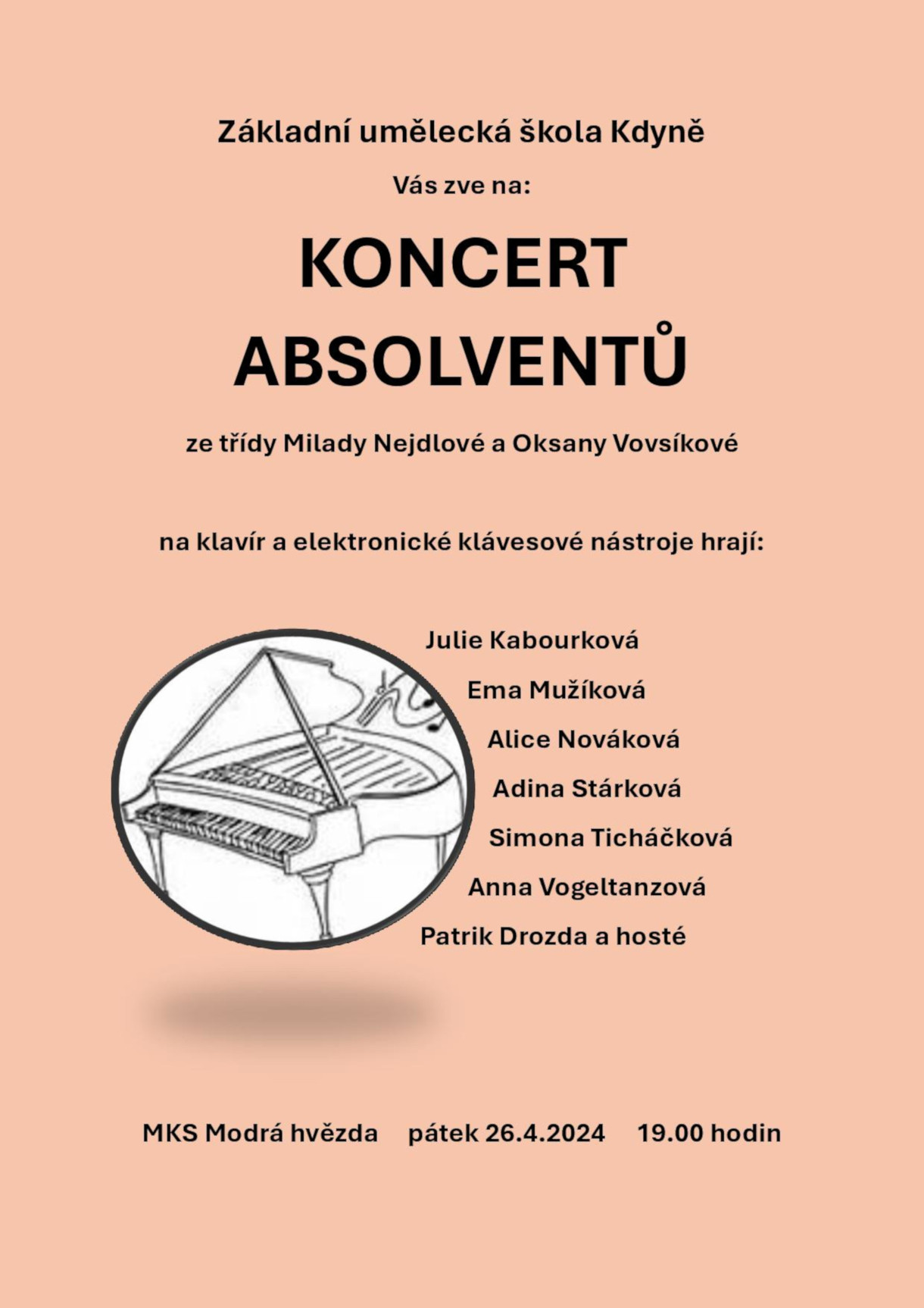 Na klavír a klávesy hrají absolventky a absolventi ze třídy Milady Nejdlové a Oksany Vovsíkové a hosté.